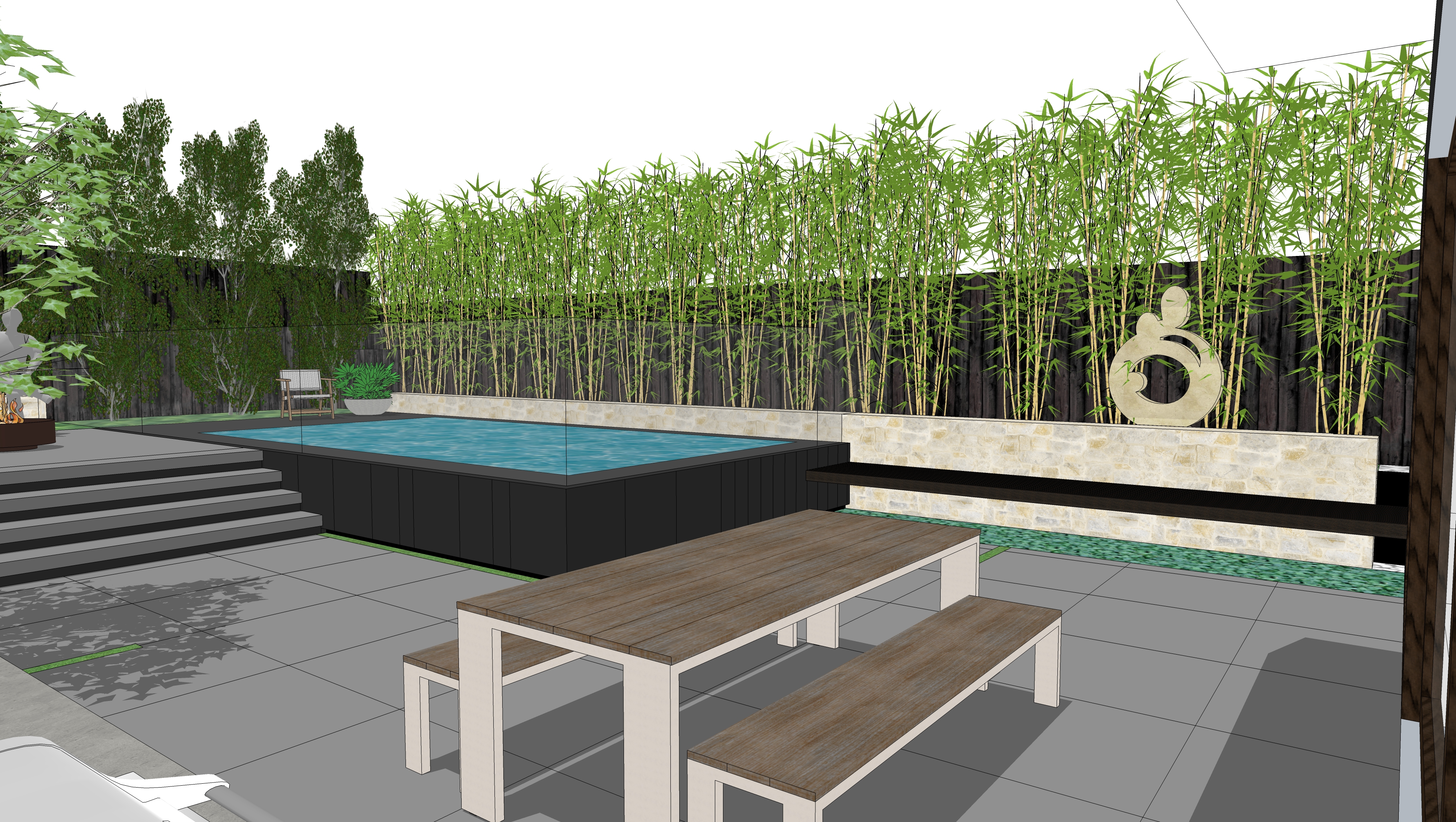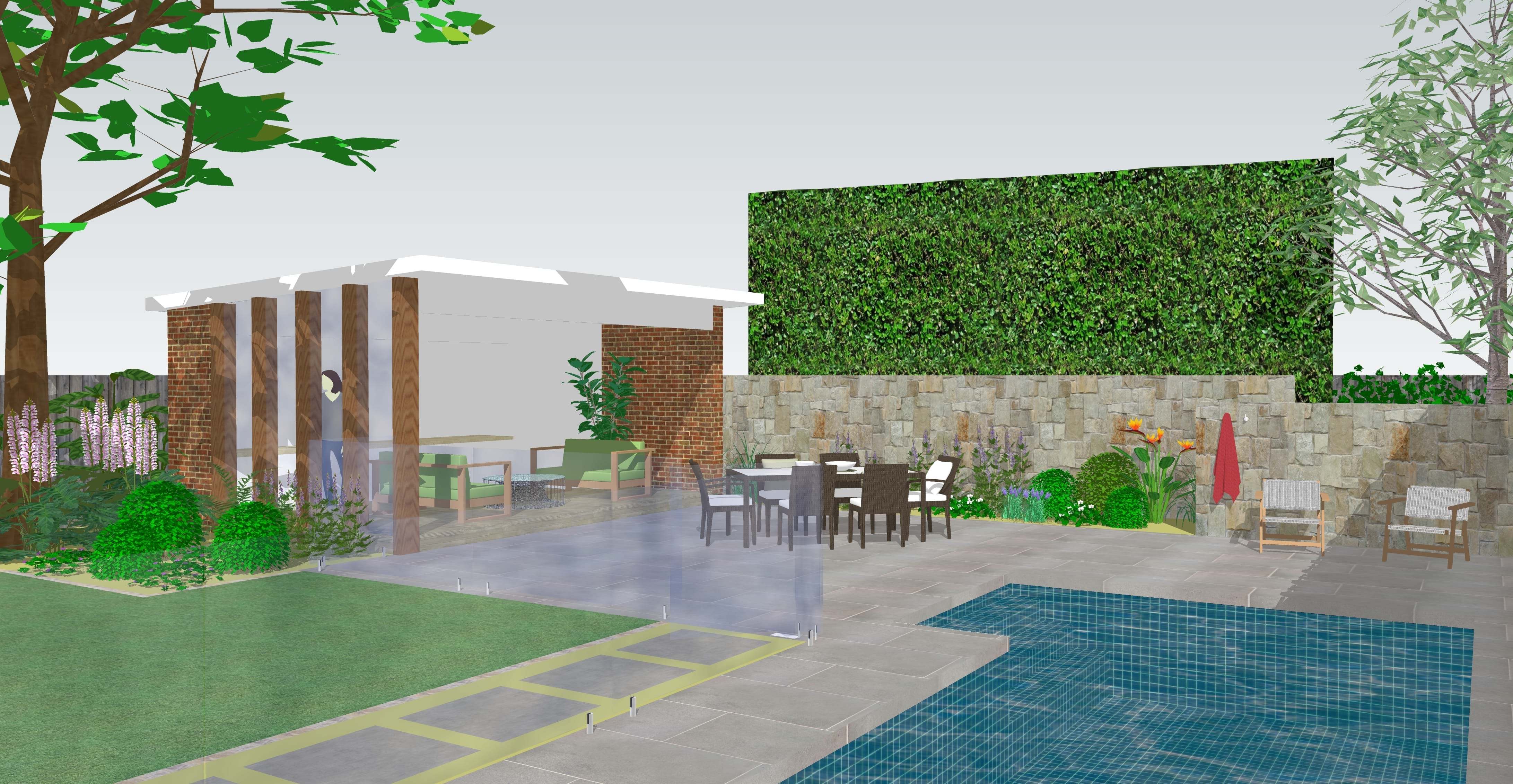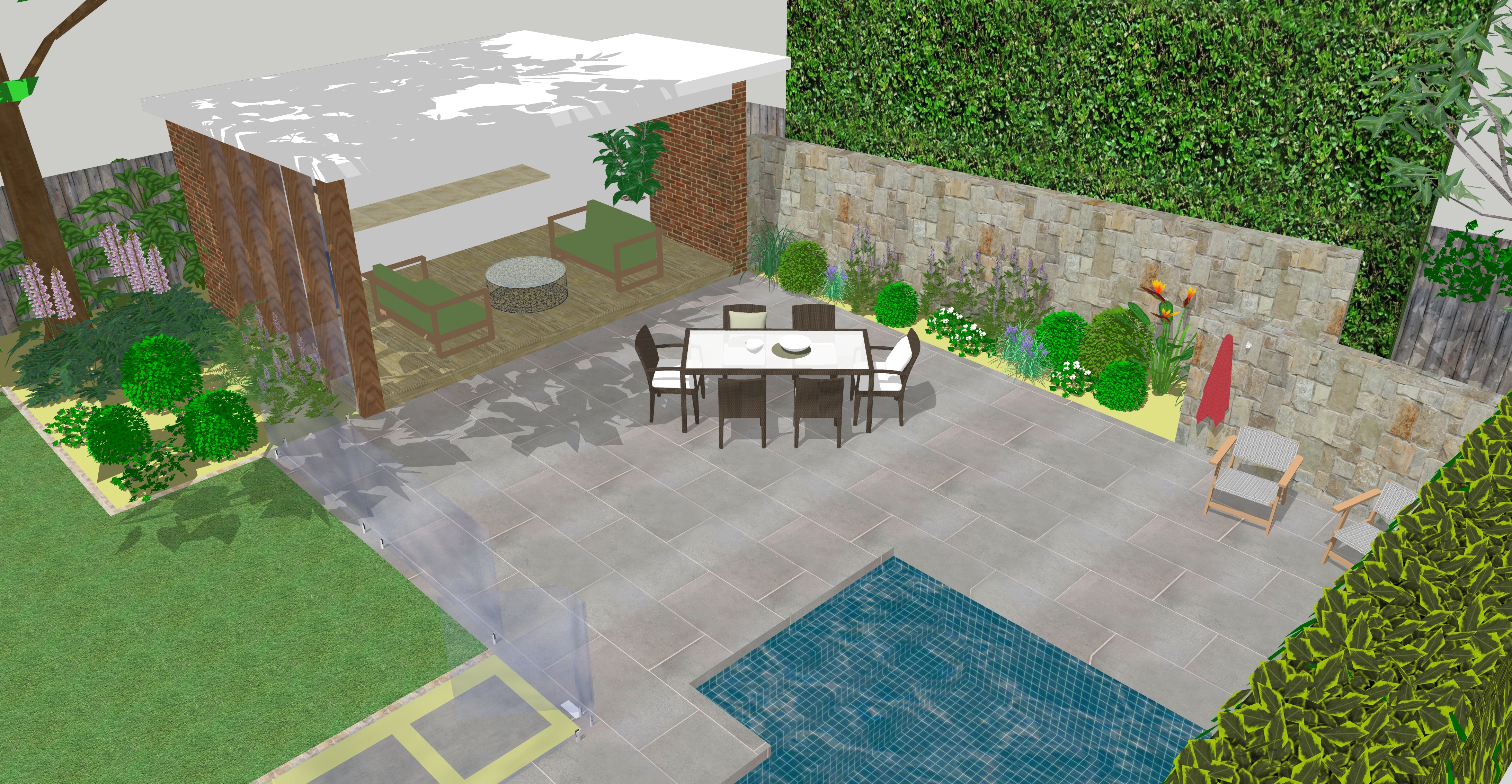 A sample selection of 3D computer model landsacape, pool and garden designs.