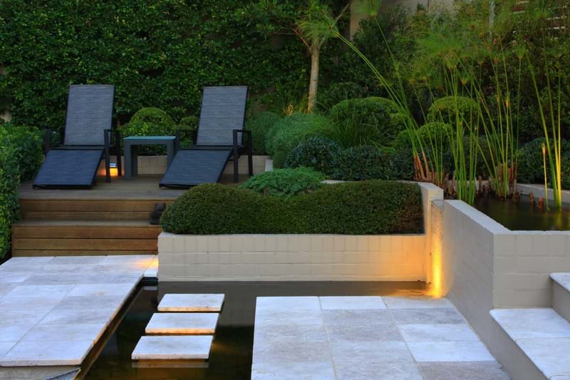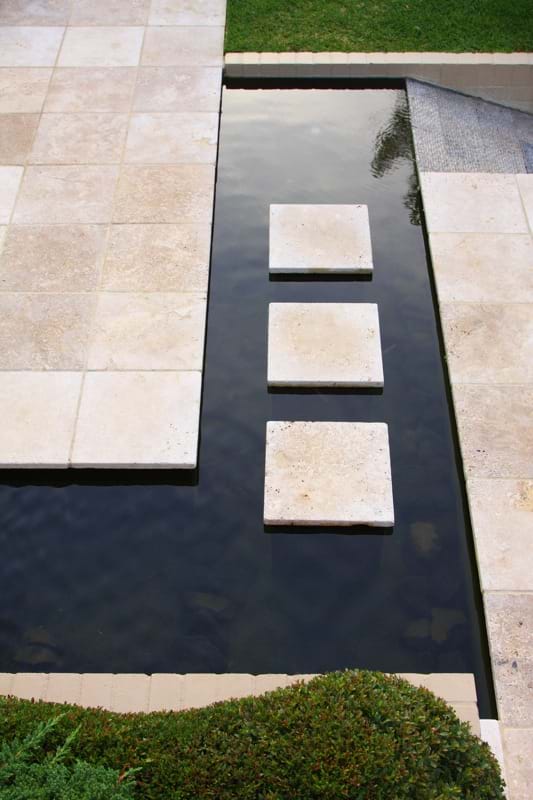 Tumbled Travertine | Water Feature | Clipped Clouds & Balls | Award Winning < portfolio | next >